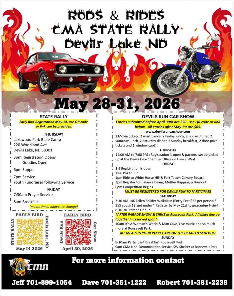 LAKEWOOD PARK BIBLE CAMP 220 WOODLAND AVE, DEVILS LAKE, ND, United StatesBEGINNING PART OF THE DEVILS RUN CAR SHOW, SEE INFO [...]