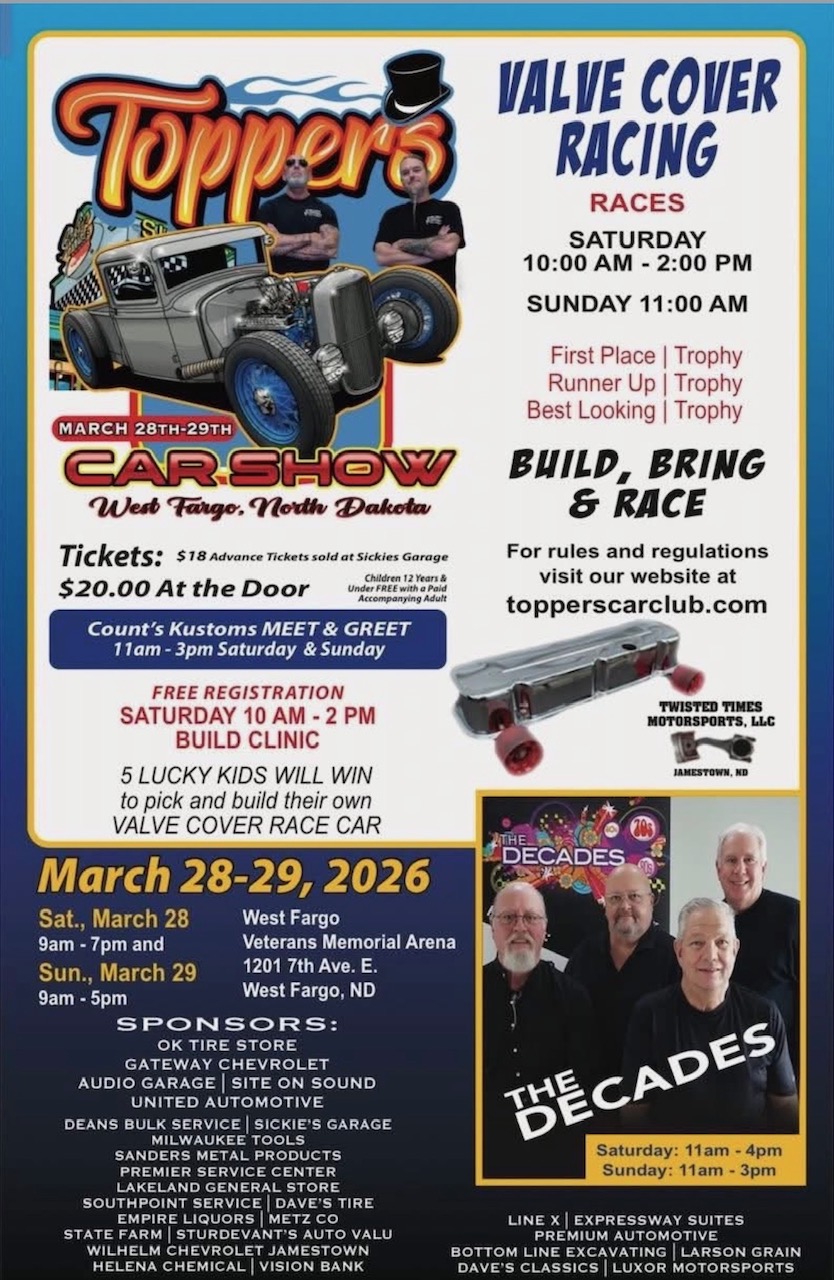 Veterans Memorial Arena 1207 7TH AVE E, WEST FARGO, N, United StatesCAR SHOW, TROPHIES AND AWARDS, FOOD, ENTERTAINMENT, VALVE COVER RACING, [...]