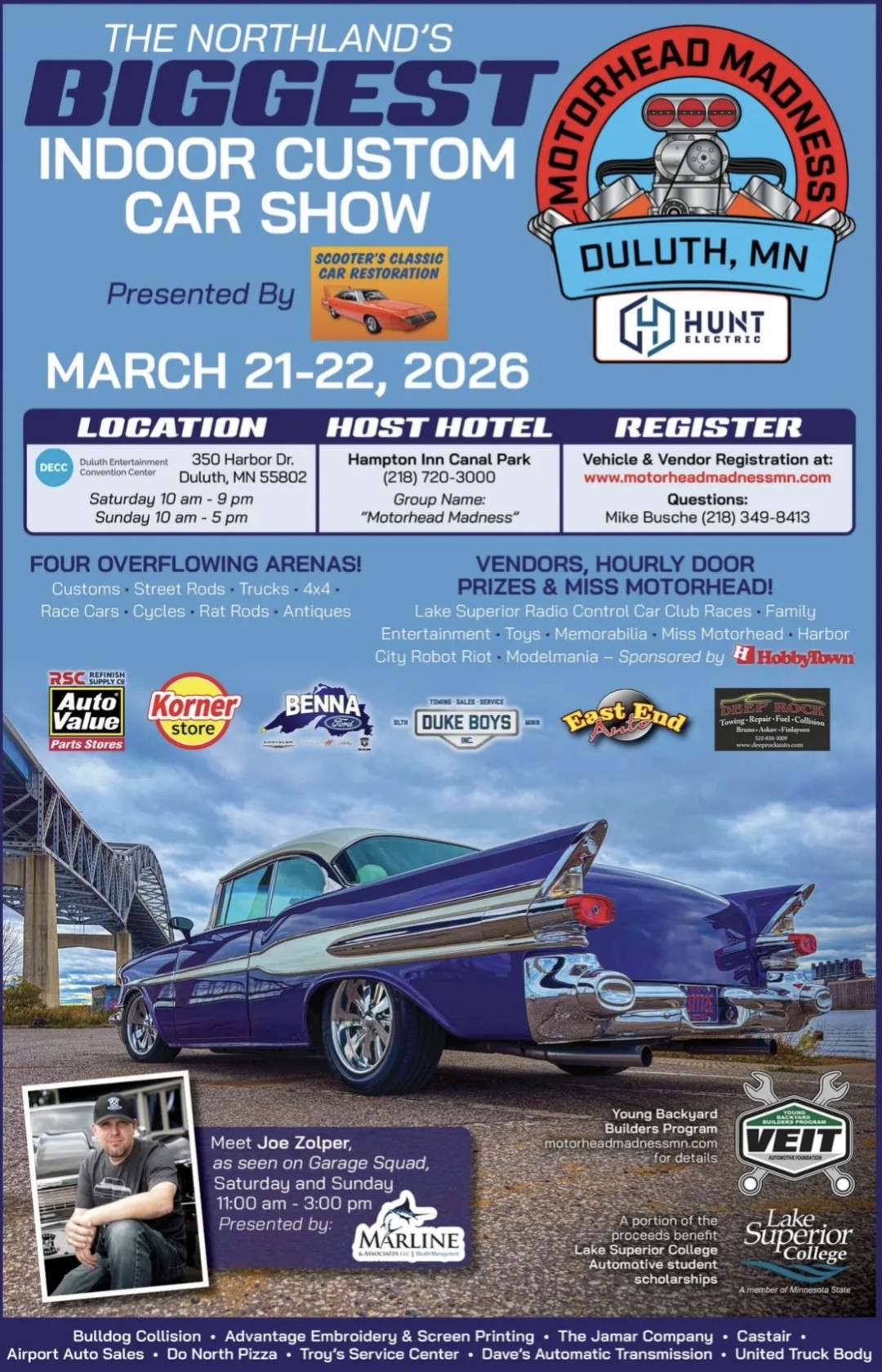 Duluth Entertainment and Convention Center 350 Harbor Drive Duluth, MN 5580, Duluth, MN, United StatesMOTOR MADNESS CAR SHOW, 4 ARENAS FULL, VENDORS, HOURLY DOOR [...]