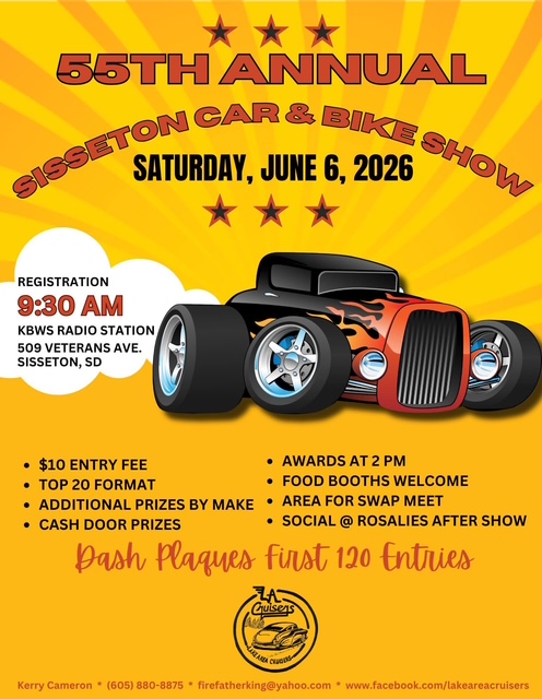 SISSETON SD SISSETON, MN, United StatesCAR AND BIKE SHOW AND SHINE, $10.00 ENTRY FEE, CASH [...]