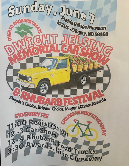 PRAIRIE VILLAGE MUSEUM 102-US2, RUGBY, M, United StatesCAR SHOW AND SHINE $10.00 ENTRY FEE, CHILDRENS BIKE GIVEAWAY,