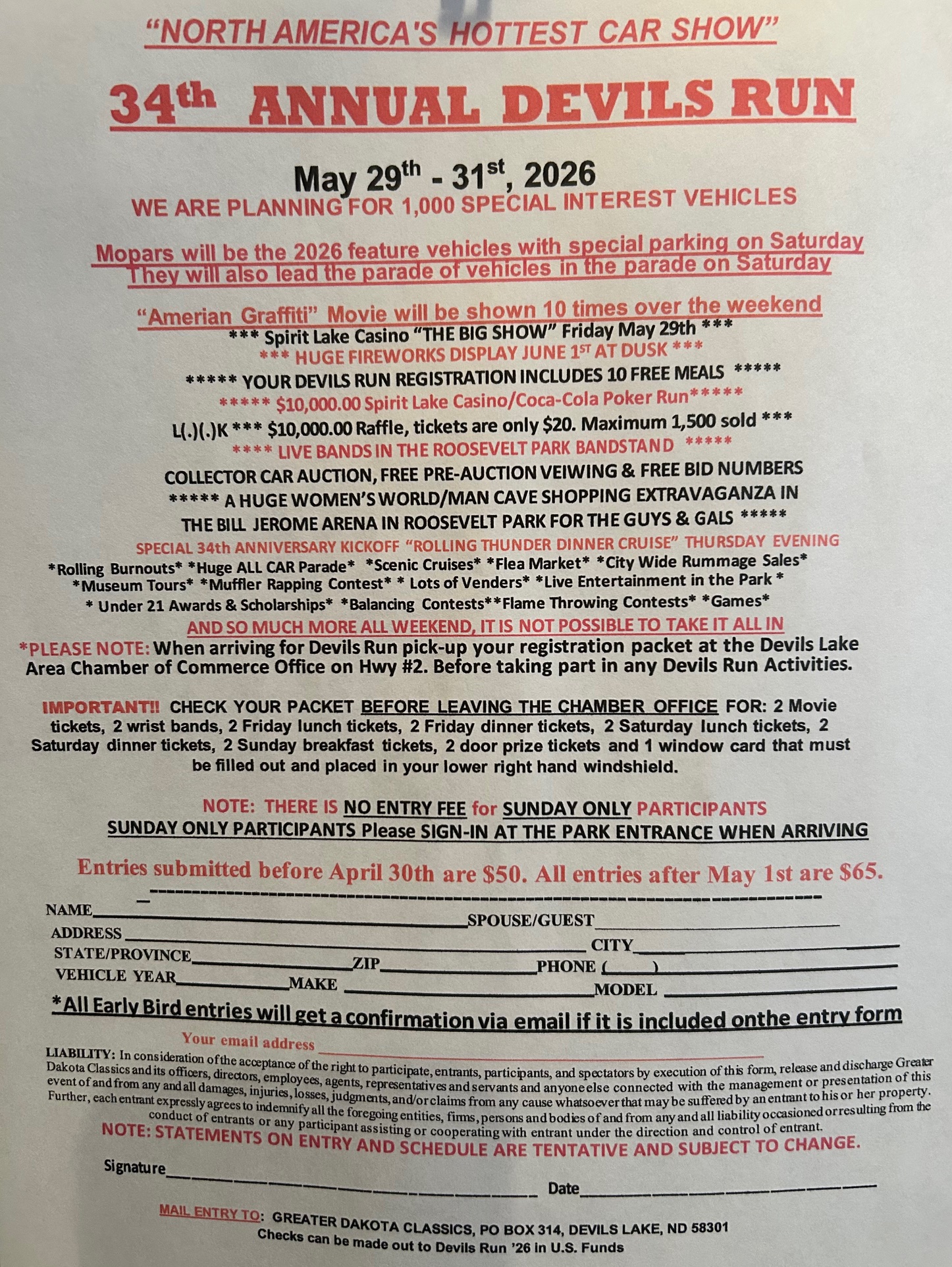 DEVILS LAKE, ND DEVILS LAKE, ND, United StatesCAR SHOW AND SHINE, CRUISES, MEALS, SEE THE FLYER FOR [...]