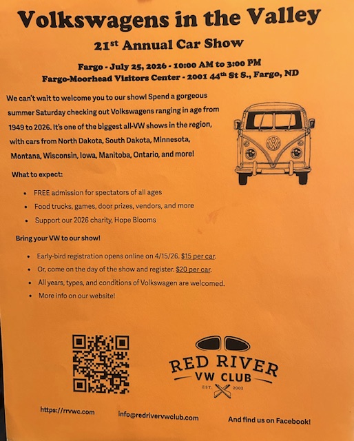 ALL VOLKSWAGON CAR SHOW YEARS FROM 1949-2026 SEE FLYER FOR MORE INFORMATION.