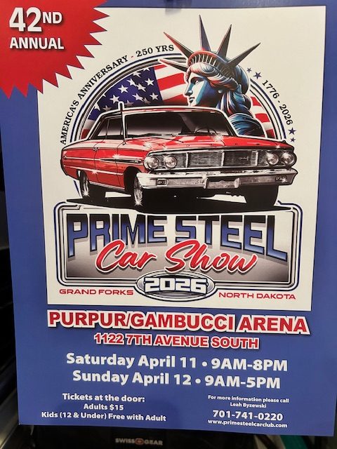 Apr 12 PRIME STEEL CAR CLUB 42ND ANNIVERSARY CAR SHOW 9:00 am - 5:00 pm GRAND FORKS, ND Event Details Get Directions