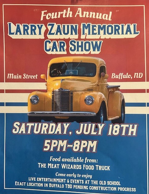 Jul 18 4TH ANNUAL LARRY ZAUN MEMORIAL CAR SHOW 5:00 pm - 8:00 pm BUFFALO, MN Event Details Get Directions